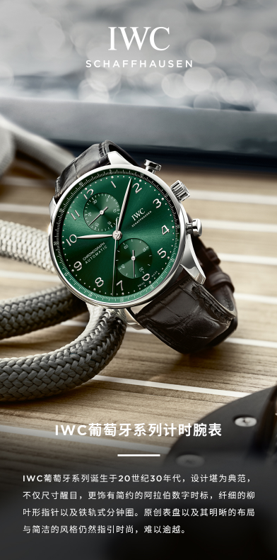 【IWC万国】IWC葡萄牙系列计时腕表绿海王线上专享万国手表男